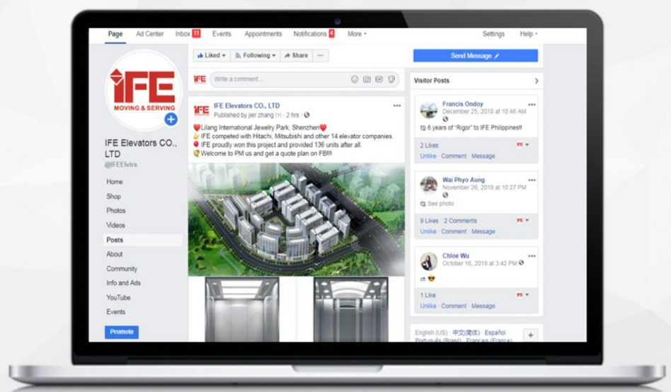 4.為快意電梯員工提供Facebook培訓(xùn),企業(yè)內(nèi)部員工學(xué)會(huì)操作,以確保對詢盤回復(fù)及時(shí)。